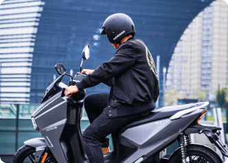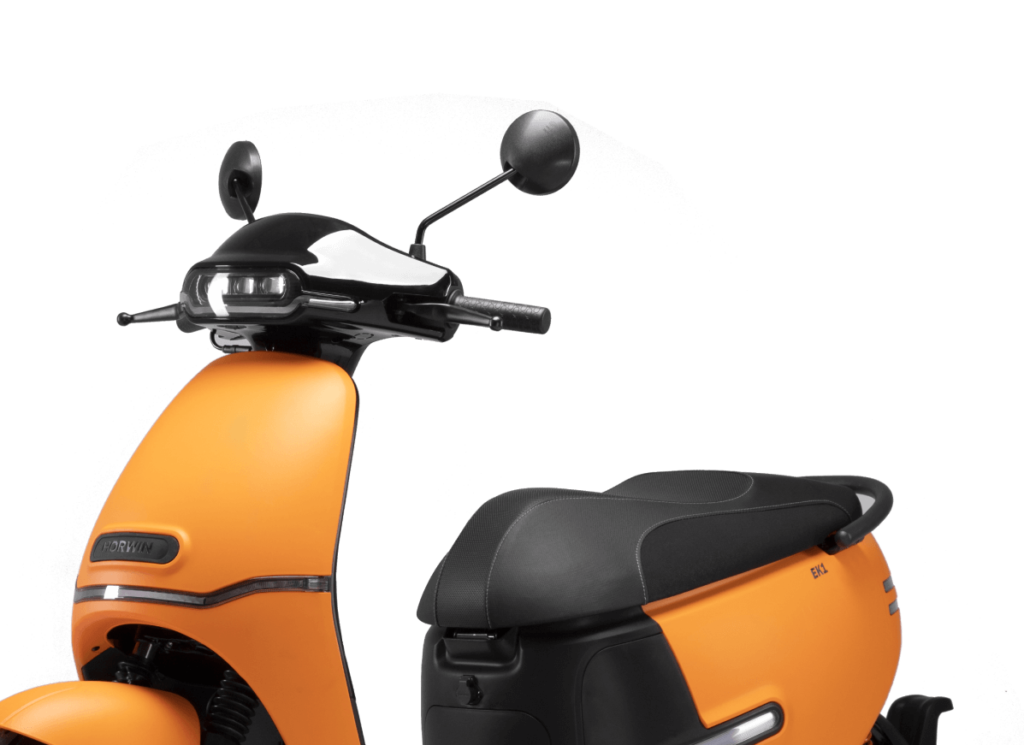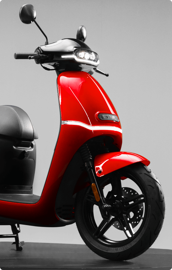 The Space Jet Fighter inside a red dot design winner electric motorcycle scooter.